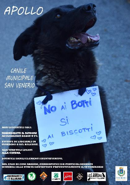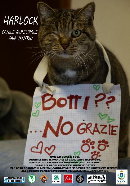 Questa campagna contro i botti realizzata a Dicembre 2016 è stata una proficua collaborazione tra le associazioni Animalisti Italiani, Associazione Beta, Lega anti vivisezione, Lav, Legambiente, Lipu, Sos Randagi, L’Impronta Volontari Indipendenti Canile ed il Comune di La Spezia.