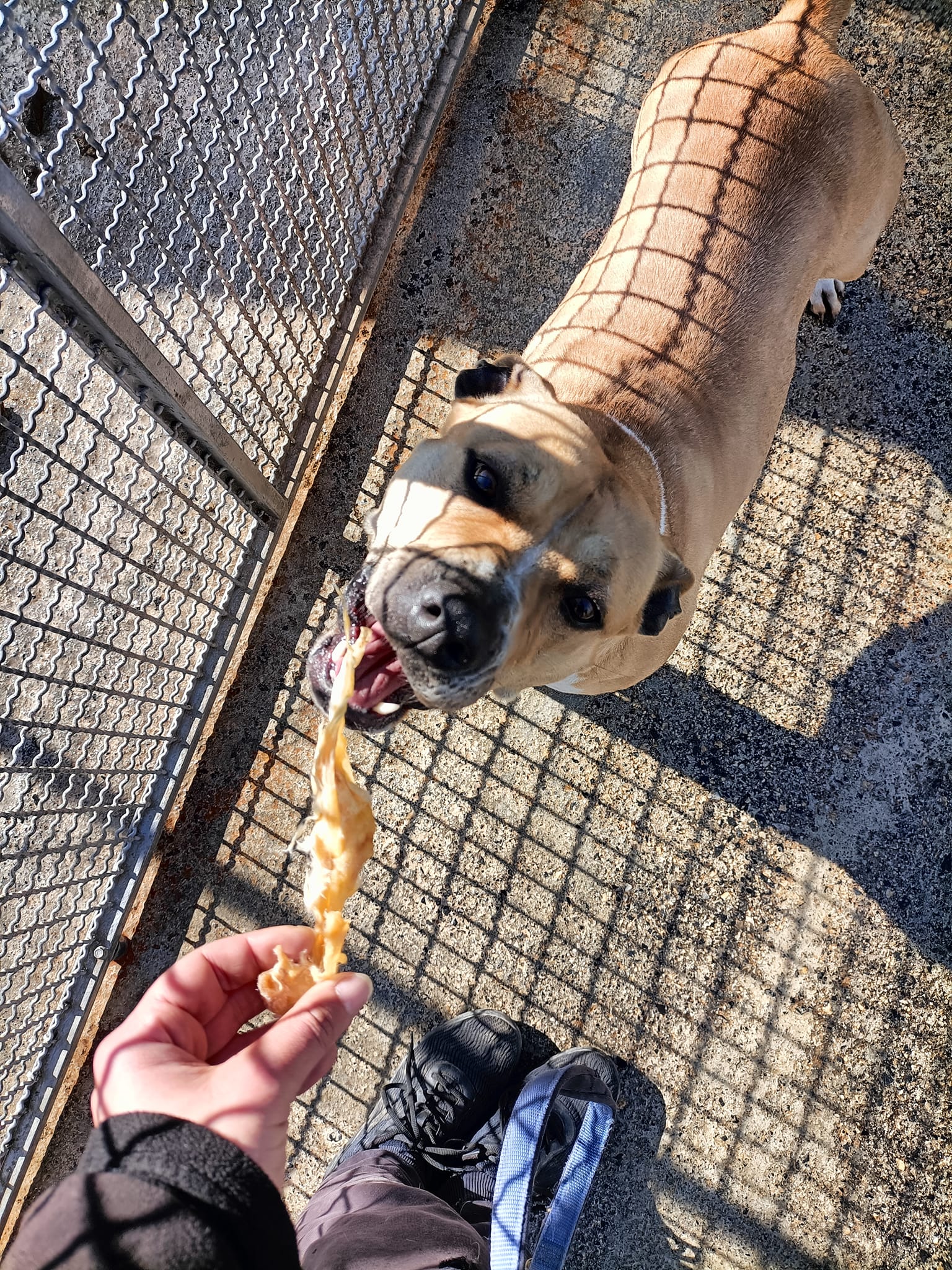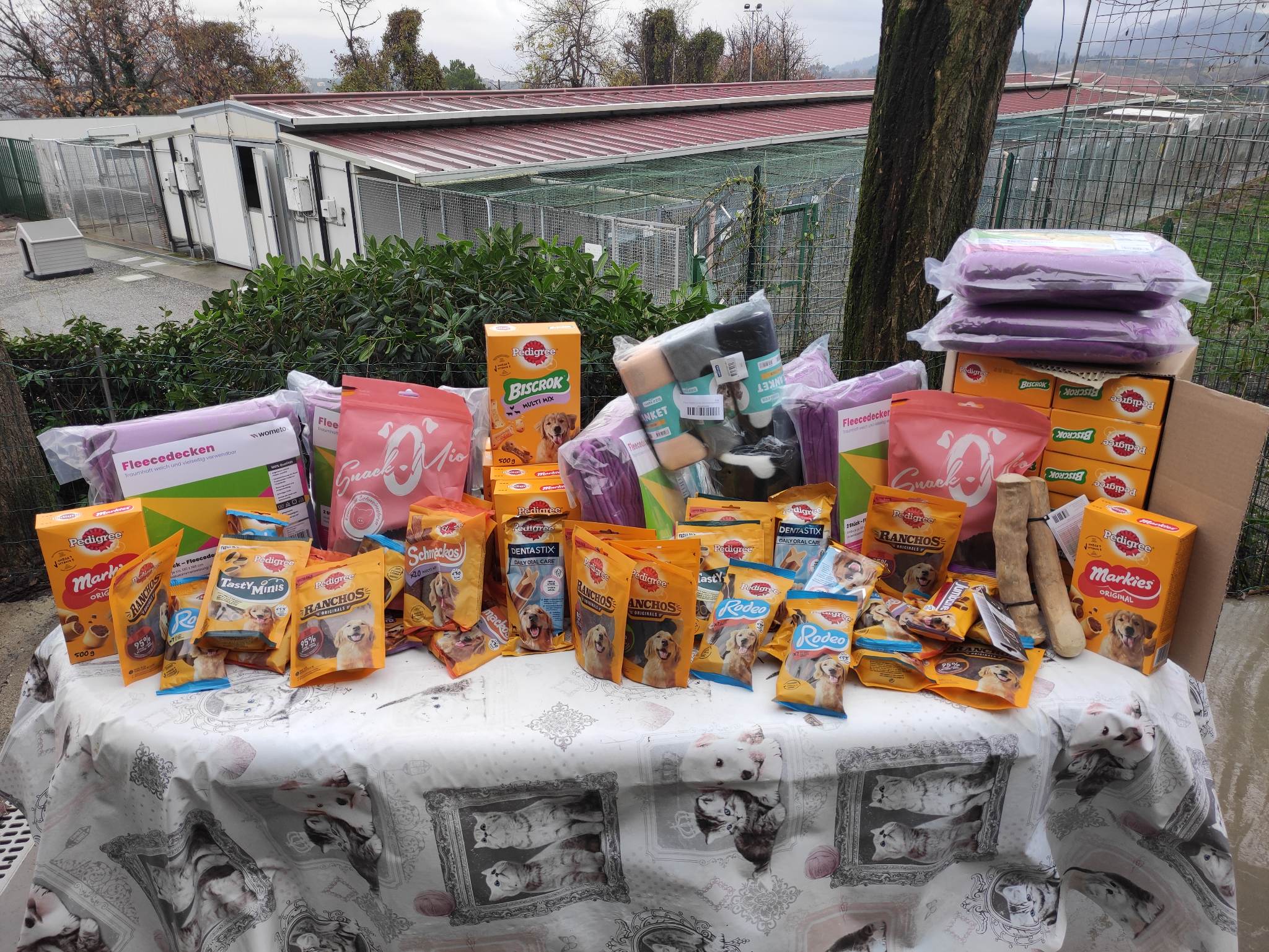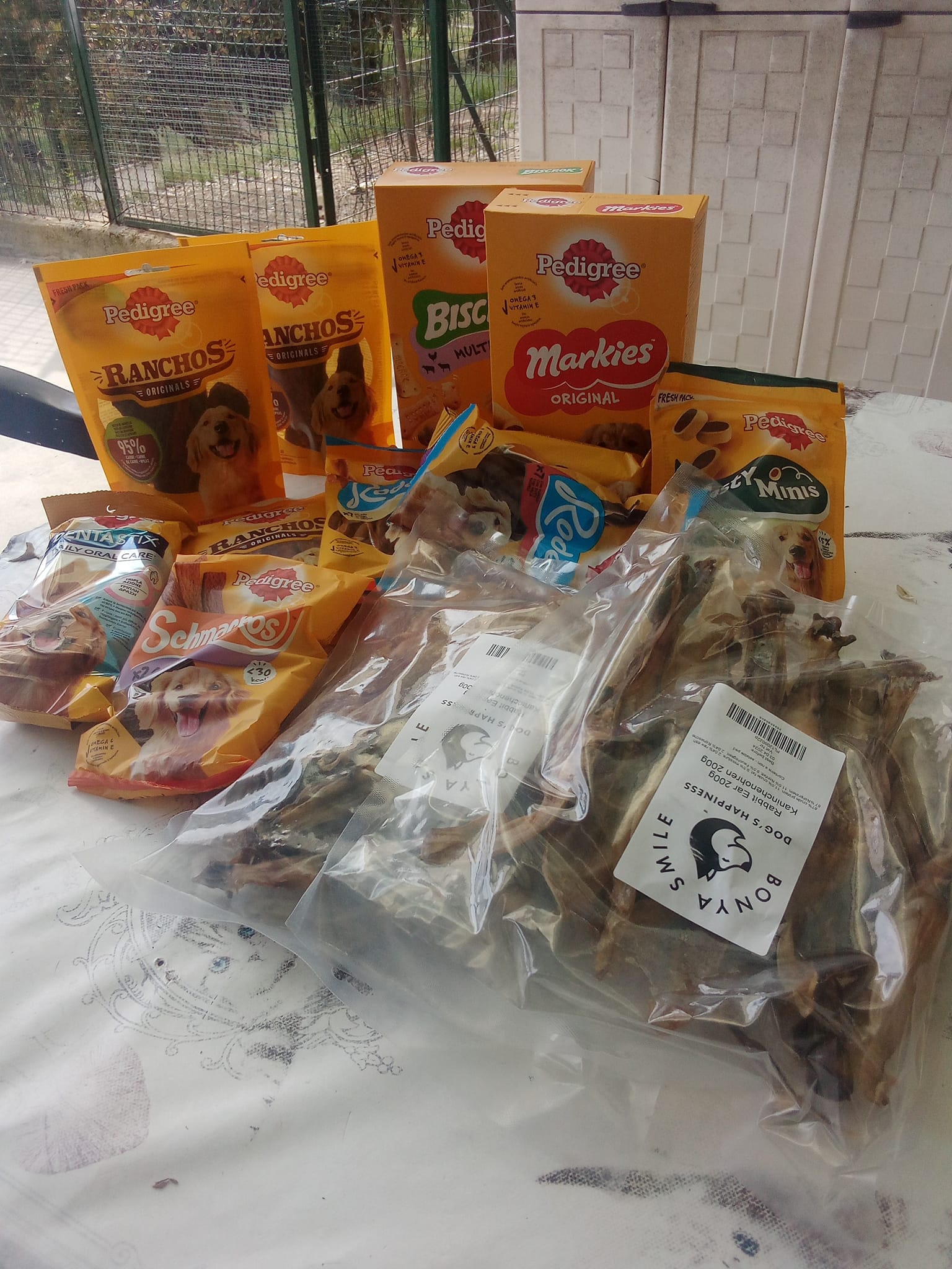 I biscotti e i premietti ci sono utilissimi per il giro serale quotidiano, quando diamo a tutti la buonanotte accertandoci che stiano bene offrendogli appunto un premietto. Per alcuni cani le corna e i bastoni di caffè sono stati un valido aiuto per scaricare la tensione. In inverno i pile che ci avete donato ci hanno permesso di rendergli più confortevoli le zone notti.