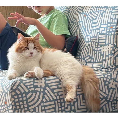 Si è ambientato praticamente subito appena arrivato da noi, trovandosi bene anche con gli altri gatti presenti, sia maschi sia femmine.