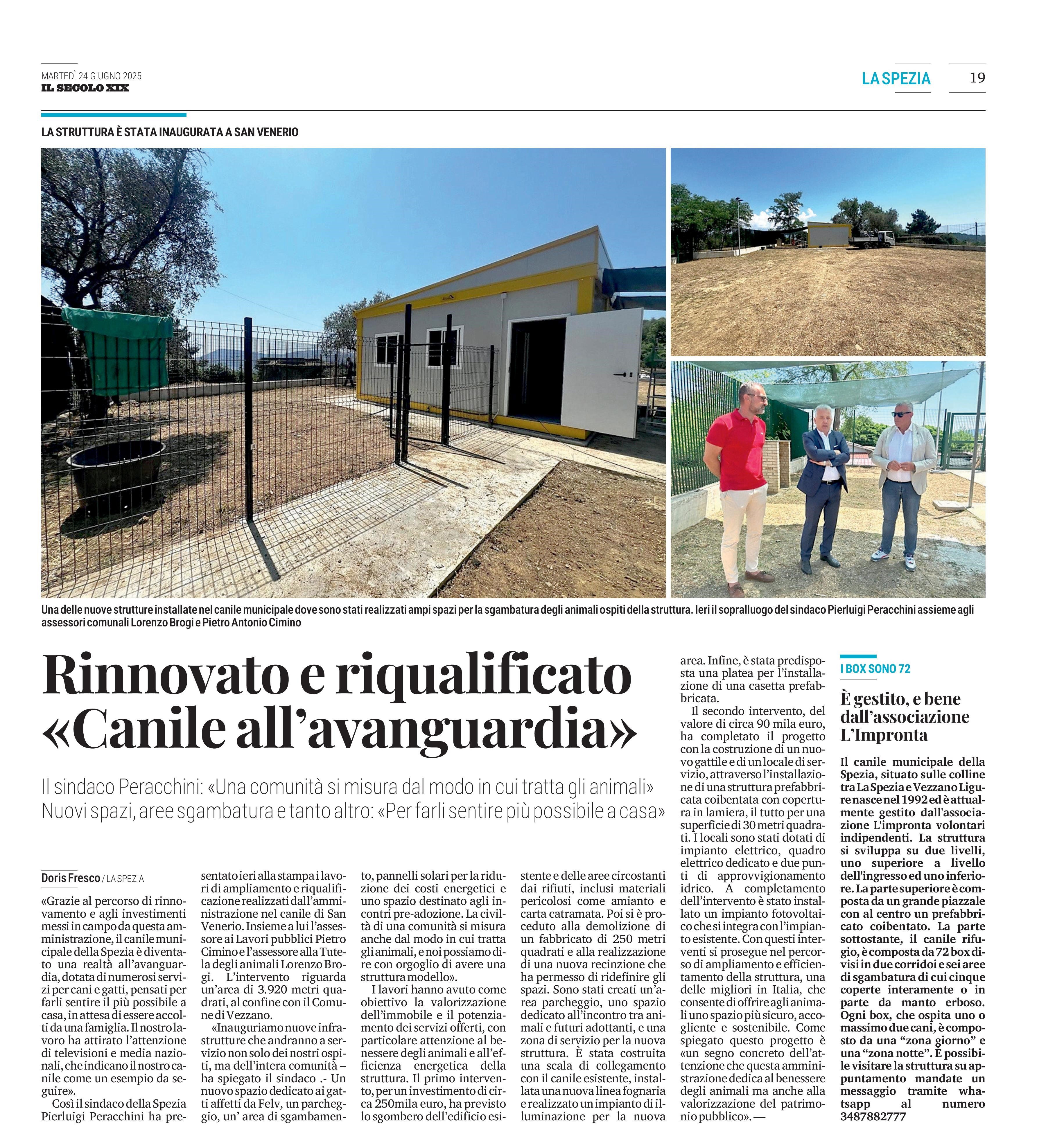 INAUGURAZIONE AMPLIAMENTO CANILE MUNICIPALE DELLA SPEZIA IL SECOLO XIX