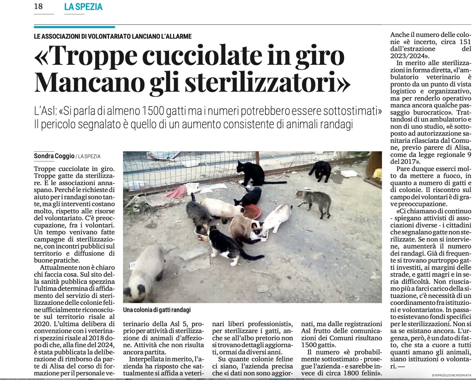 MANCATE STERILIZZAZIONI DEI GATTI IL SECOLO XIX