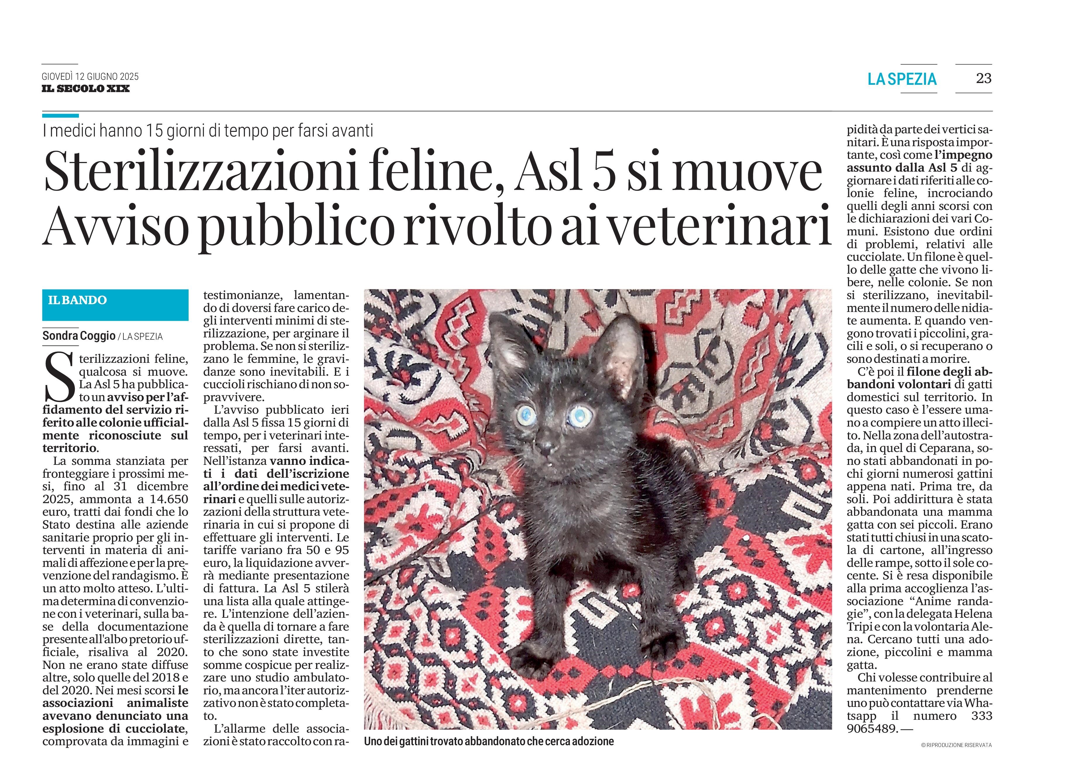 STERILIZZAZIONI GATTI QUALCOSA SI MUOVE IL SECOLO XIX