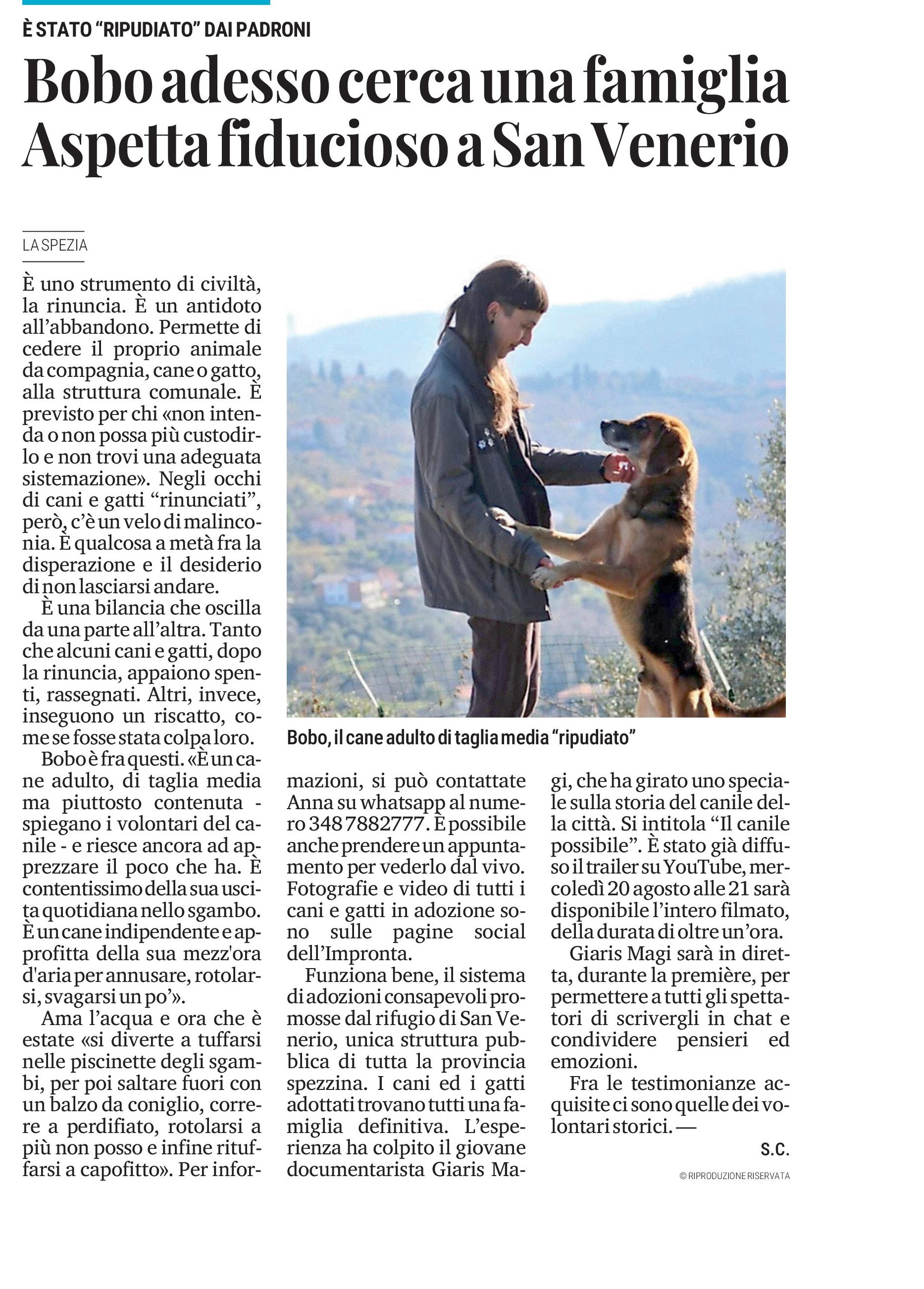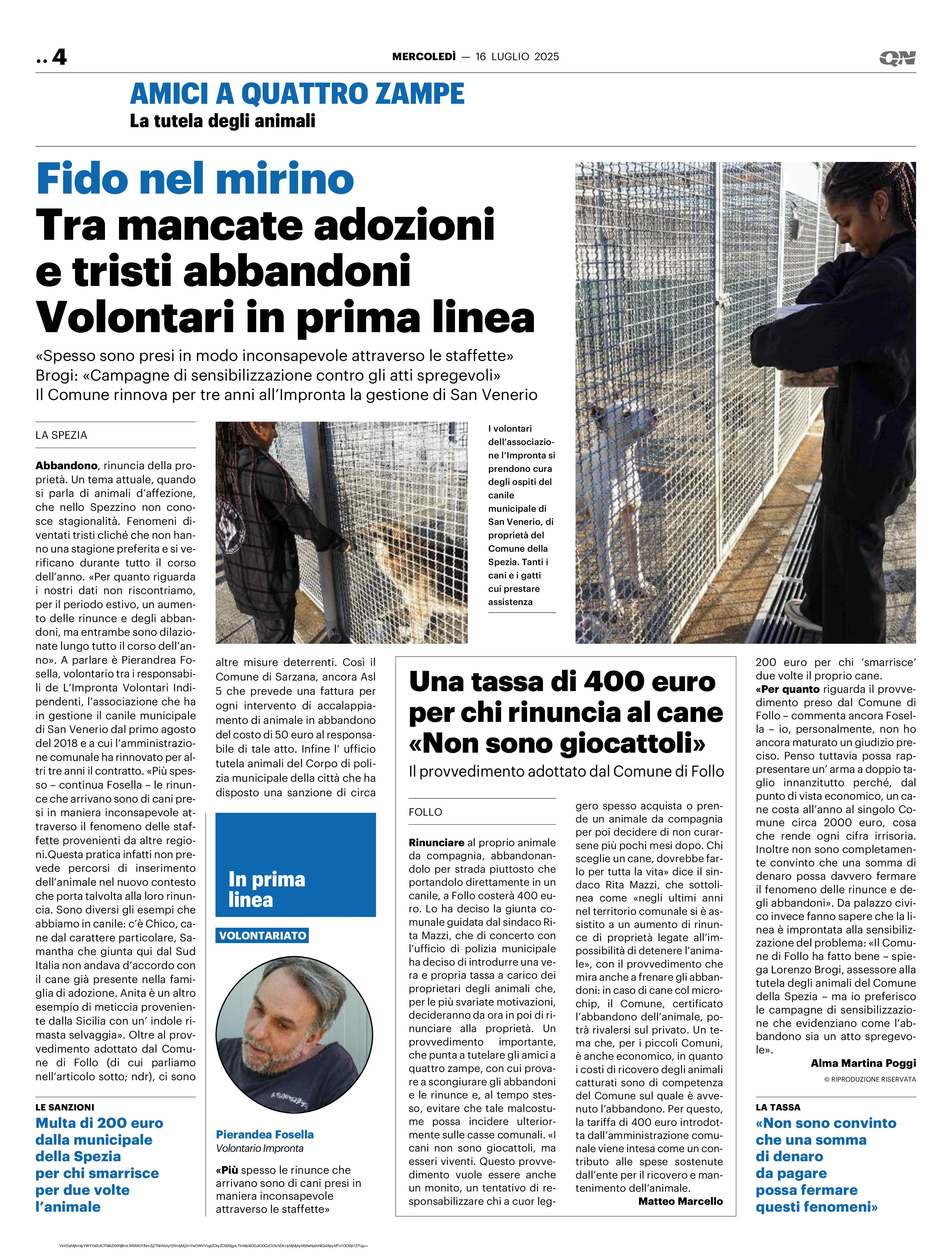 News DOCUMENTARIO CANILE MUNICIPALE DELLA SPEZIA IL SECOLO XIX