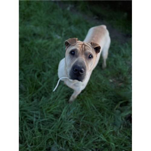 BLUE, giovane shar pei dal carattere piuttosto introverso. Al momento non vive serenamente la manipolazione, non è adatto a famiglie con bambini. Ha bisogno di tempo e pazienza per superare i traumi subiti per colpa dell'essere umano.
