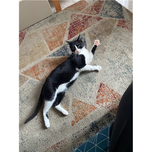 Questo bel maschione bianco e nero è un gatto adulto